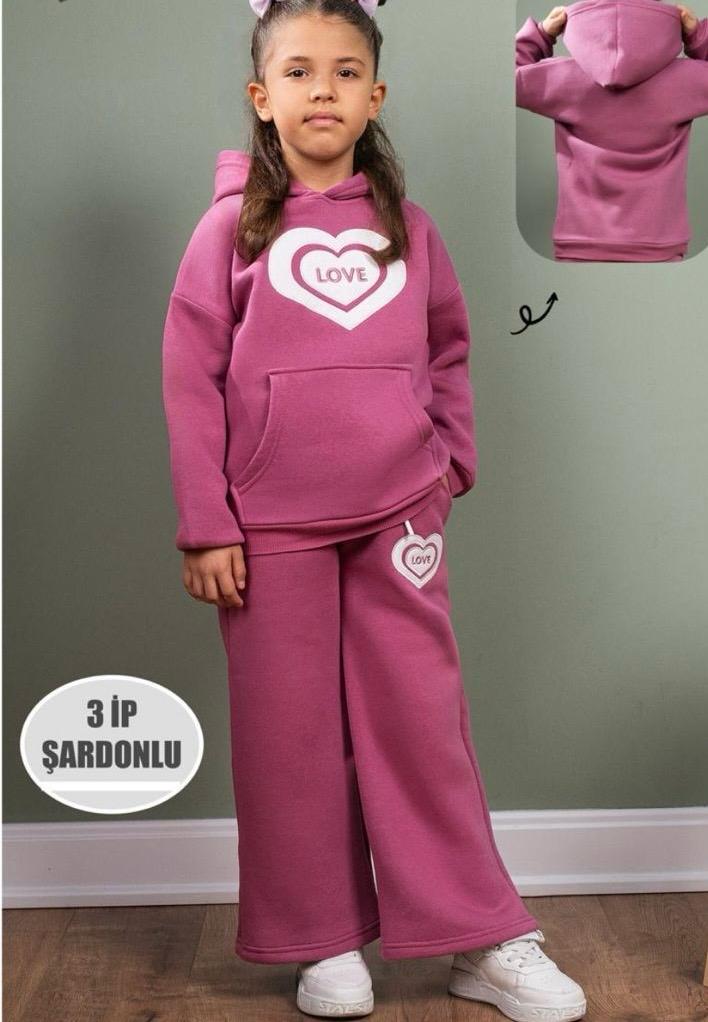 Kız çocukları için tasarlanmış olan bu takım, özellikle dikiş detayları ve modern kesimiyle dikkat çekiyor. 3 iplik şardonlu yapısı, soğuk havalarda onları sıcak tutarken, %100 pamuklu kumaşı da cilt dostu özellikleri ile öne çıkıyor. Küçükler, bu takım sayesinde hem şık hem de rahat hissedecekler.