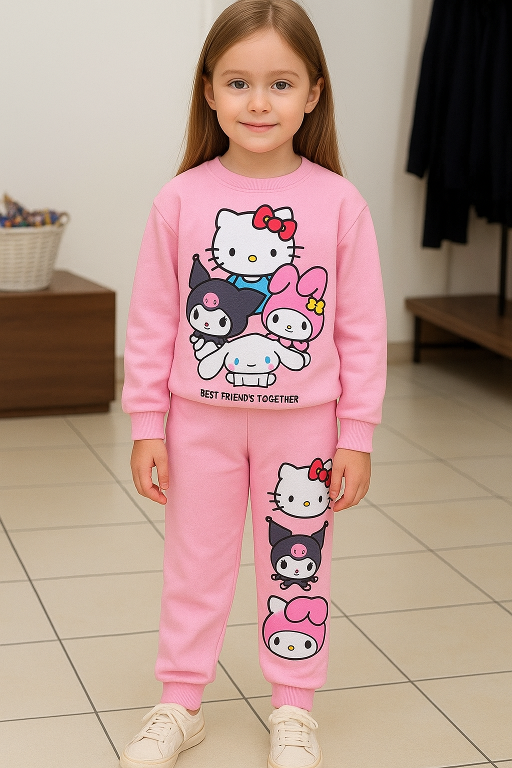 Kız Çocuk Baskılı 3 İplik Şardonlu Takım %100 Pamuk