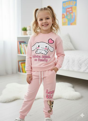 - Model: Takım, şık bir üst ve uyumlu alt parçadan oluşur. Üst parçada sevilen karakter baskıları kullanılmıştır.