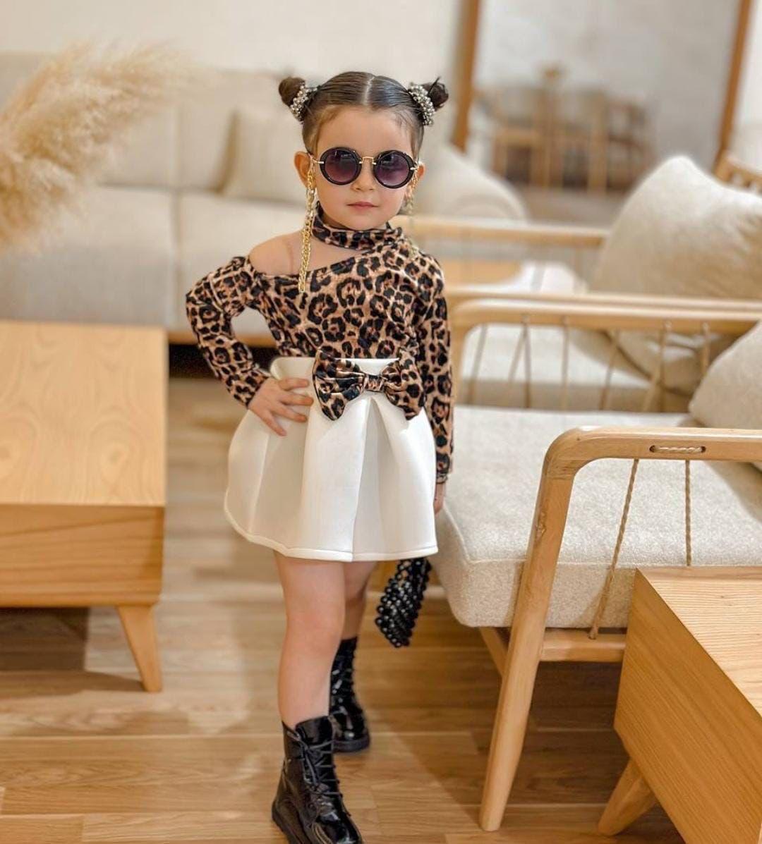 KIZ ÇOCUK LEOPARLI ABİYE ELBİSE
